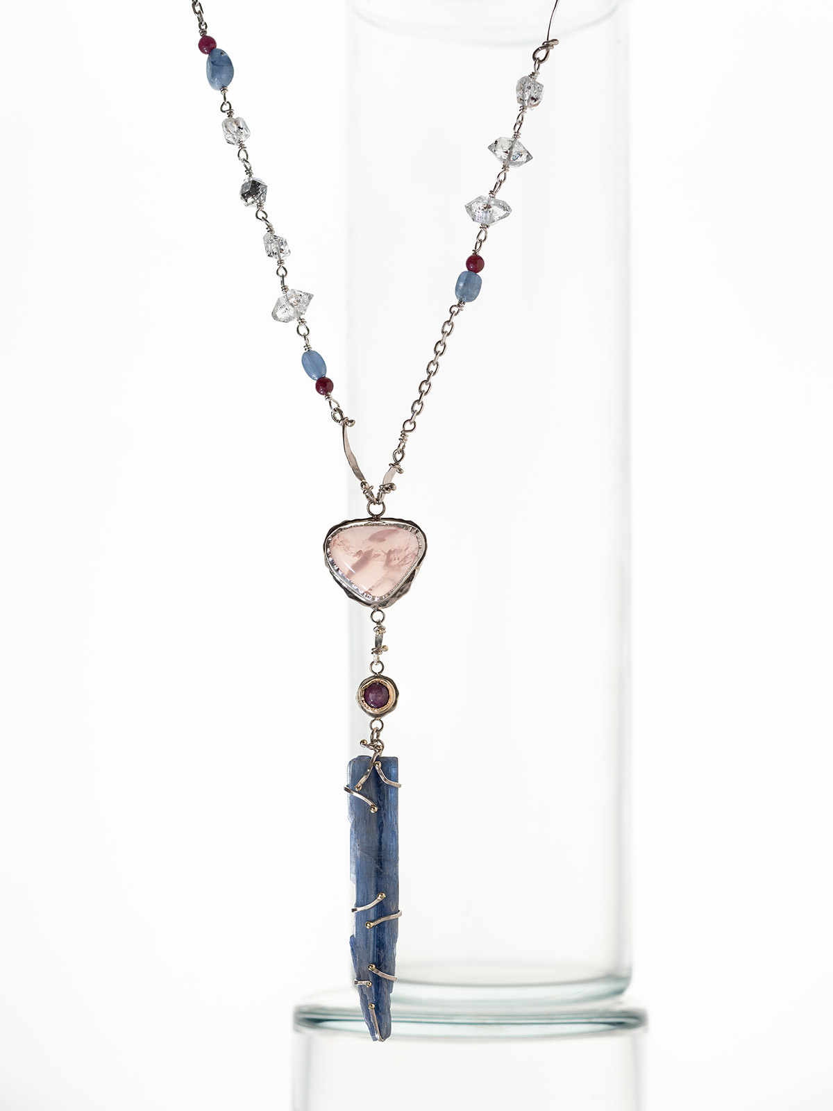 | Materials | Sterling Silver, 14K Gold, Paraiba Quartz, Star Ruby, Kunzite, Opal, Apatite, Tanzanite, Purple Sapphire |