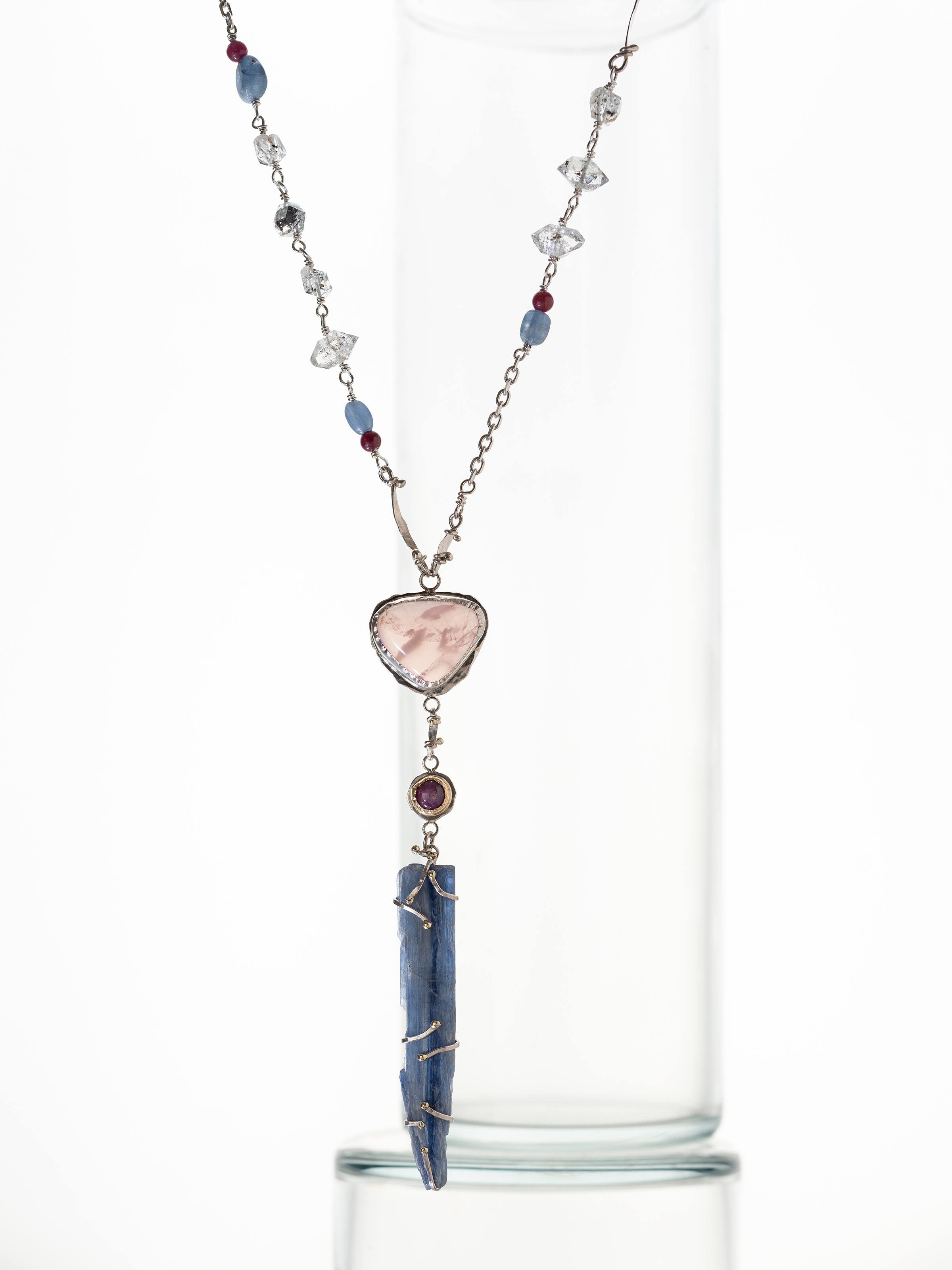 | Materials | Sterling Silver, 14K Yellow Gold, Rose Quartz, Ruby, Kyanite, Herkimer Diamond |
