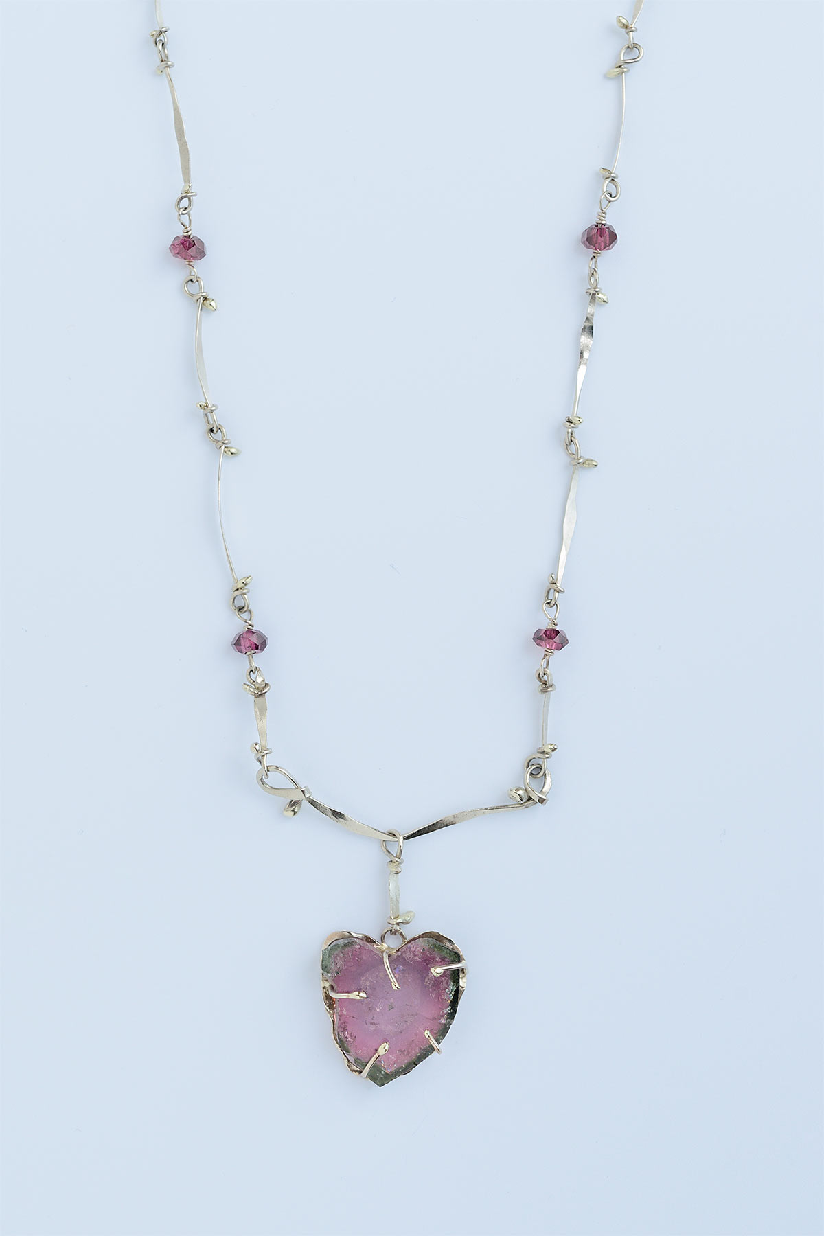 14K White Gold, Watermelon Tourmaline, Garnet
